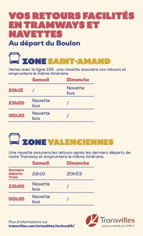 Un partenariat avec Transvilles, réseau urbain du Valenciennois vous permet de venir et repartir en transports en commun